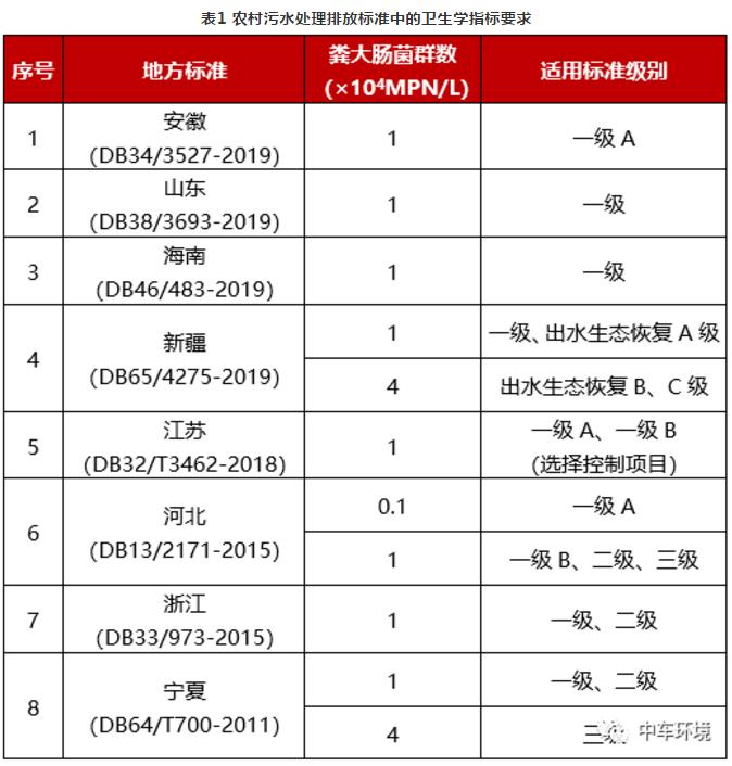 1 農(nóng)村污水處理排放標(biāo)準(zhǔn)中的衛(wèi)生學(xué)指標(biāo)要求